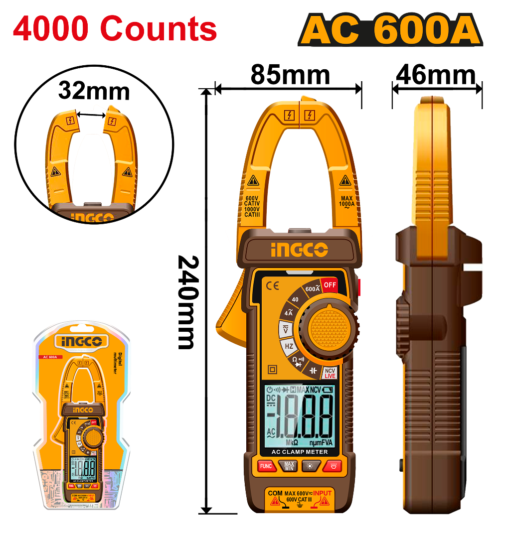 PINZA AMPERIMETRICA AC-600A INGCO