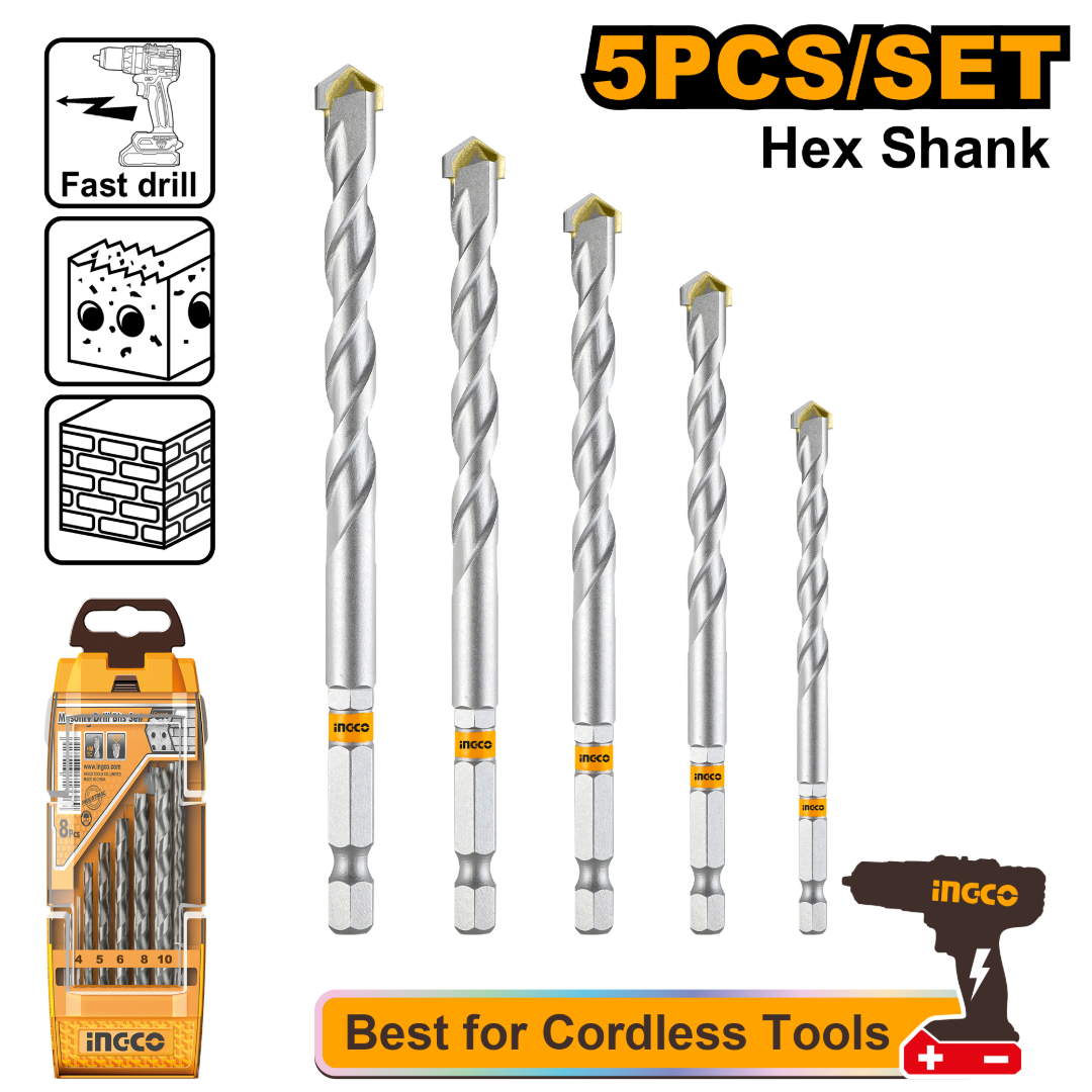 SET 5 MECHAS MAMPOSTERÍA -Tamaño 4X85 5X95 6X100 8X120 10X120 -Máxima eficacia de perforación -Adecuado para perforar cemento, hormigón, ladrillo y bloque