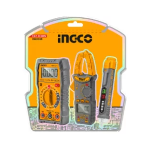 El set INGCO DM3028 reúne tres herramientas esenciales para la medición eléctrica: una pinza amperimétrica de CA, un multímetro digital y un detector de voltaje. Perfecto para electricidad residencial o profesional, este kit permite diagnóstico seguro y eficiente de circuitos, cables y equipos. Presentado en blister con accesorios incluidos (cable de prueba y pilas AAA).